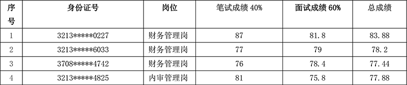 宿遷市城區(qū)開發(fā)投資有限公司招聘管理崗位人員面試成績公示